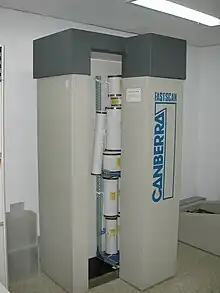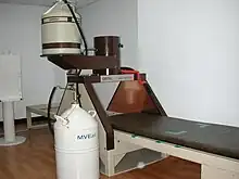 In 1950, Leonidas D. Marinelli developed and applied a low-level gamma-ray whole body counter to measure people who had been injected with radium in the early 1920s and 1930s, contaminated by exposure to atomic explosions, and by accidental exposures in industry and medicine[4][5] The sensitive methods of dosimetry and spectrometry Marinelli developed obtained the total content of natural potassium in the human body.[6][7][8][9][10][11] Marinelli's whole body counter was first used at Billings Hospital at the University of Chicago in 1952.[12]