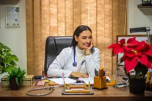 A woman doctor at her desk in a hospital in Egypt. Though women still face challenges in fully participating in medical professions, women are increasingly getting recognition and inclusion in medicine around the world.