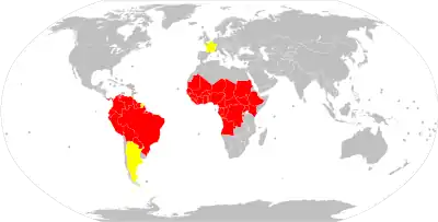 - ↑ "Countries with risk of yellow fever transmission and countries requiring yellow fever vaccination (May 2021)". www.who.int. Retrieved 28 April 2022.