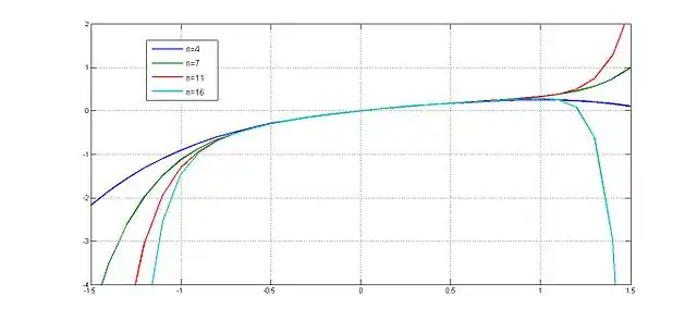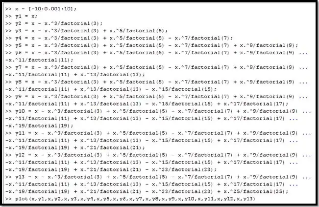 Using MatLab, the following Taylor series expansion was plotted and coded:
