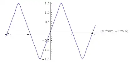 The accuracy of the expansion as shown on the plot is expected given the low number of terms used in the expansion. As Figure 3 shows, if the number of terms used to form the plot in Figure 4 is increased, the accuracy of the expansion will greatly increase (but more slowly at points of discontinuity because of the Gibbs phenomenon). This level of accuracy is shown in Figure 5, which contains the expansion to 100 and 200 terms.