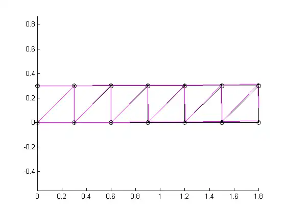 For the 3-bar truss example in K.2008.2 on pg. 43, solve this problem, but with non-zero prescribed disp dofs, using your own FE matlab code(not CALFEM). Using the same "connectivity array" given in the same problem statement, provide all of the results, including all of the unknown global disp dofs, force components(reactions), and member forces. Plot the deformed shape superposed on the undeformed shape. Verify the results with CALFEM.