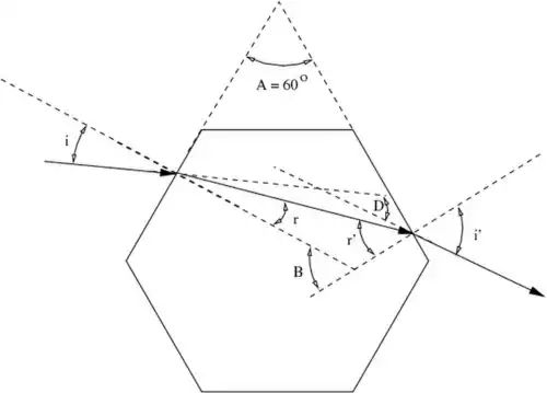 Consider light refracted from a single hexagonal ice crystal as shown in Figure 10.