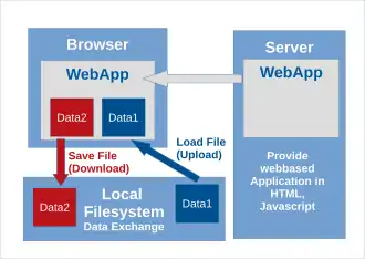 LoadFile4DOMdoes the same for WebApps and loads data (e.g. text files) into the browser runtime environment for processing or editing with the WebApp (which is defined by HTML, CSS and Javascript-Code).LoadFile4DOMprovides Load Dialog and programmers define withnonloadhandlers, what to do with the uploaded file (see example). - (Processing) Processing is the core task that will be performed within the browser (and not on a remote server).