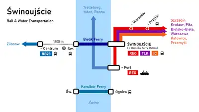 - REG PKP operates from Szczecin to Świnoujście 8 regional trains, 4 of them start in Poznań.