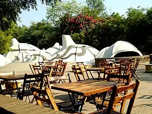 - π Vishalla, Opp. APMC Market, Vishalla Circle, Vasna, β +91-79-26602422. Daily 11AM-11PM. Best dish: thali meals. Average food, but unusual because of its village-like decor and rather strange utensils museum. It has several pre-dinner activities like puppet-show for children, folk music and dance, snake-charmers, etc. Lunch βΉ484, dinner βΉ1019, plus GST, children about half-price.