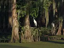 Atchafalaya Basin (also known as Atchafalaya Swamp) is America's largest swamp, it covers much of the Acadiana region of Louisiana. It's more than a million acres in area, mostly wetland forests, and includes a number of recreational areas including boat launches and remote camping areas. It is a popular destination for fishermen and for paddlers who want to kayak the myriad channels, islands, and wetlands. The swamp is rich in biodiversity and includes federal and state protected areas.