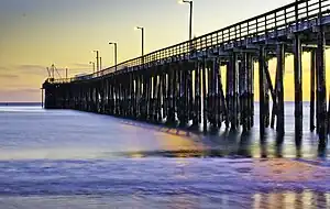 - 🌍 Avila Beach Pier. The main pier was built in 1908 and extends from the center of Avila Beach for 1,685 ft (514 m) out into the ocean. It is used primarily for recreational fishing and strolling. There are three piers in Avila Beach.