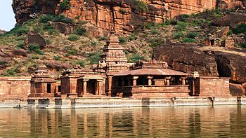 - Rope-climbing. With all the cliffs surrounding the town, Badami is a nice spot for climbing, not least since the sandstone is flattering to the hands. There are three big sectors (from north to south Ganesh Plateau, Deluxe Area and Temple Area with more than 30 or 40 routes each, as well as four smaller ones containing between 6 and 19 lines. While Temple contains routes around 20m, Deluxe and Ganesh go as high as 26 m. Kannaragavi even has some multipitch routes (38m). Equipment (rope, quickdraws, chalk, helmet, carabiners) can be hired at Rock Climbing Badami, however make sure the rope is still in good condition before you take it.