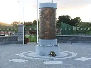 - The Fighting 69th Monument is on Sligo Road R294 north of the railway station, at the entrance to town park. After the failed Young Irelander rebellion of 1848, several leaders escaped to the USA. From New York they campaigned for Irish independence, and organised Irish militia units which became adopted into the US Army, the bulk of them as the 69th Infantry Regiment (New York) in 1849. This regiment was heavily involved in the US Civil War and remains active, with over 250 years of battle honours. One notable general was Michael Corcoran, born in 1827 at Carrowkeel near Ballymote. In 1860 he faced court-martial for refusing to parade the regiment for the Prince of Wales' visit to New York. Charges were dropped because of his success in recruiting Irishmen to the Union cause, and he distinguished himself at the Battle of Bull Run and elsewhere. He was killed when thrown from his runaway horse in 1863, aged 36. The regiment's 1917 campaign in France was made into a film The Fighting 69th in 1940: the misfit hero Jerry Plunkett (played by James Cagney) is fictional but many other characters are real. In World War II the 69th served in the Pacific, culminating with Okinawa. In 2001 they were among the first responders to the 9/11 attack on Manhattan, and firefighter Michael Lynch who perished that day was from Ballymote. The Ballymote monument, unveiled in 2006 by NY Mayor Michael Bloomberg, depicts scenes from Corcoran's life. At its base is a small chamber containing a piece of steel from the World Trade Center.