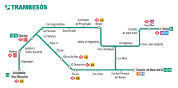 L2 cuts across the northernmost part of the district, even further northwards from where T5 and T6 run. There is an interchange between L2 and T5, but only in Badalona. This line is possibly of least use to tourists and mostly one for commuters.