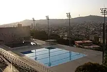 - 🌍 Piscina Municipal de Montjuïc (Swimming pool on Montjuic), Av Miramar 31, ☏ +34 934430046. M-F 11:00-18:30. In the summer months July and August the outdoor swimming pool is open for public. This pool offers spectacular views over the whole city. The pool is close to the exit from the funicular that departs from metro station Parallel; metro ticket is valid for the funicular. €5.05 for adults.