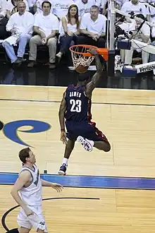 The National Basketball Association (NBA), the top league of basketball in the world, has 30 teams as of the 2024–25 season, one of which is from Canada and 29 from the United States. The NBA season begins in October and lasts until April, when a playoff series begins featuring the top 8 teams from the Eastern and Western Conferences. This culminates in June with the NBA Finals, where the conference champions meet to determine the NBA champion.