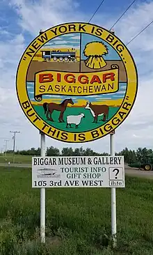 Biggar is a small town in West Central Saskatchewan, with a population of around 2,100 (2021). The town is known for its slogan "New York is big, but this is Biggar."
