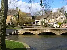 Bourton-on-the-Water is famed for its picturesque High Street. Lying on the meandering River Windrush with several low arched stone bridges resulted in the village becoming known as "Venice of the Cotswolds".
