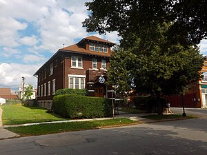 The Darwin Martin House is not the only Frank Lloyd Wright-designed house in North Buffalo. Another one, the π Walter V. Davidson House, can also be found in Parkside. Located at 57 Tillinghast Place in the northwest extremity of the neighborhood, the Davidson House was designed for its namesake, who was an executive at the Larkin Company between 1906 and 1913, thereafter founding the Davidson Shoe Company. Though it's noticeably smaller and more unassuming than the Darwin Martin House β the smaller budget Wright worked with in constructing the Davidson House was perhaps a forerunner of the "Usonian" houses he designed for middle-class clients toward the end of his career β its modest scale belies a stunning two-story living room dominated by a massive bay window at its east end. Sadly, the Walter Davidson House is privately owned and not open for tours.