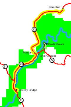 Headquarters is in Harrison. The Tyler Bend Visitor Center, the main visitor center for the park, is 31 miles south of Harrison and 11 miles north of Marshall on US Highway 65. The park has two other visitor contact stations: the Pruitt Ranger Station, 5 miles north of Jasper on Arkansas Highway 7, and Buffalo Point Ranger Station, 17 miles south of Yellville on Arkansas Highway 14.