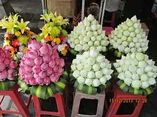 Don't forget Khmer desserts - Pong Aime (sweets). These are available from stalls in most Khmer towns and can be excellent. Choose from a variety of sweetmeats and have them served with ice, condensed milk and sugar water. A must-try is the Tuk-a-loc, a blended drink of fruits, raw egg, sweetened condensed milk and ice. Also, keep an eye out for waffle street vendors. The farther you are from hotel row, the better the coconut waffle batter. On the south edge of town the coconut waffles are so good they make your feet dance.