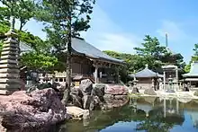 - Kongōfuku-ji Temple (金剛福寺), on the left side of the road right before the park, is one of the largest temples on the 88 Temple Pilgrimage and worth a visit. Reputedly founded by Kobo Daishi back in 822, most buildings are in fact rather new.