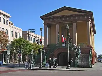 - π Fireproof Building, 100 Meeting Street, β +1 843-723-3225. M-F 9AM-4PM. A National Historic Landmark constructed in 1827 and believed to be the oldest building of fireproof construction in the United States. The work of Robert Mills, the first native-born American to be trained as an architect, and a Charleston native who worked with other important early American architects such as Thomas Jefferson and Benjamin Latrobe. Mills was responsible for the Washington Monument and many other public buildings. The building consists primarily of solid masonry in a simple Greek Doric style. An oval hall contains a cantilevered stone staircase lit by a cupola. The building serves as the headquarters for the South Carolina Historical Society, a private non-profit organization founded in 1856.
