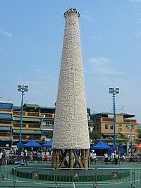 A bun tower being prepared for the festival. - Birthday of Tin Hau. Besides the Bun Festival, another big festival is the birthday of Tin Hau. Tin Hau is the "queen of the heaven" and is closely associated with seafarers and fishermen. The birthday of Tin Hau is in the Chinese calendar on the 23rd day of the third lunar month. However, people in Cheung Chau usually celebrate it on the 18th, because in the past, there were no street lights on the island and people couldn't see when they were on their way to the temple during the night time, but moving the festivities a few days earlier meant that they could using the moonlight. Now it has become a tradition to celebrate it earlier. During the celebrations, you may see floats, acrobats, lion dancing, and effigies of mythical animals.