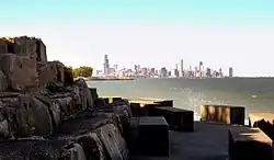 - π Promontory Point Park (The Point), 5491 S Lake Shore Dr, β +1-312-747-6620. Promontory Point is a beautiful spot to take in the great skyline view, gaze off into the blue, watch summer fireworks, or take a swim in its submerged beach (north side of the point). (It's illegal, but everybody does it.) The Point was constructed under the depression era Works Progress Administration in the style of the Prairie School of park design.