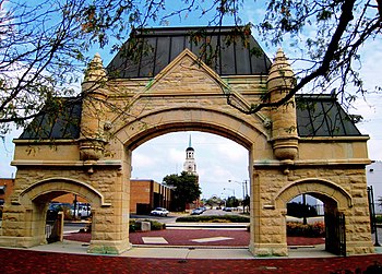 - 🌍 The Union Stock Yard Gate, 4200 S Peoria St. This limestone structure marks the entrance to the now defunct Union Stock Yards that dominated this section of Chicago (and the meatpacking industry of the country) in the late 19th-early 20th centuries. The current stone gate replaced an original wooden gate, designed by the legendary architect John Root, of Burnham and Root (who you'll know well if you read Devil in the White City). Look on the front of the gate for Sherman, a prize winning bull — the Second City's second most famous bovine, right on the heels of Mrs. O'Leary's Cow.