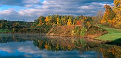 Cleveland Harbor/Rock & Roll Hall of Fame - Historically nicknamed the "Forest City" (due to a famous description of a highly sophisticated society amid a heavily forested environment in Alexis DeTocqueville's "Democracy in America" (1831)), Cleveland is a great place for outdoor activities. USA Today ranked Cleveland among the 10 best big cities for hiking. If you think Cleveland is just a "rust belt" city, get out to the nearest Cleveland Metropark. The parks form an Emerald Necklace around the Cleveland metropolitan area, so no matter which direction you go from downtown, you're headed toward a park. Biking, horseback riding, jogging and rollerblading are easily accommodated by the miles of trails (paved and unpaved) encircling Cuyahoga County. In the winter, visitors can cross country ski these same trails. Sitting upon the foothills of the Allegheny Mountains, Cleveland also provides downhill skiers with slopes throughout the area.