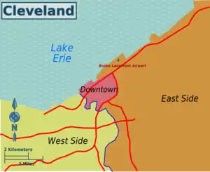 The following are districts of the city of Cleveland. For the Cleveland Metropolitan area see Cuyahoga County.