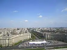 - 🌍 Parliament Palace (Palatul Parliamentului), Strada Izvor 2-4 (near Piaţa Unirii (Union Plazza) in Bucharest - M1, 3 'Izvor' - entrance is on the north side), ☏ +40 21 3160300. The world's second largest building (after the US Pentagon), formerly named "Casa Poporului" (People's House). The building, which was built in 1984 on orders of Nicolae Ceauşescu, spans 12 stories, 3100 rooms and covers over 330,000 m². 1/9 of Bucharest was reconstructed to accommodate this magnificent massive building and its surroundings. There are 30- to 45-minute tours every half hour which lead through the building's vast collection of marble rooms and culminates in an impressive view from Nicolae Ceauşescu's balcony. The marble and all the original decorations are 100% from Romania. The basic tour includes the halls and the balcony, worthwhile is the terrace addition for the wonderful view from the top of the building. The basement addition on the other hand is not worth the money. They only show two rooms containing air ducts, no additional facts and it lasts only 5 minutes. Different Tours ranging in price from 25 lei (15 lei for students, proof required) up to 43 lei.