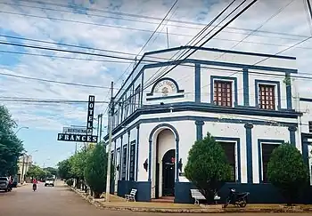 - 🌍 Hotel Francés, Presidente Franco and Carlos Antonio López (three blocks west of the port on main street), ☏ +595 331 242383, hotel_frances@hotmail.com. Housed in one of the city's characteristic old manors Hotel Francés is a nice hotel in a building full of character on an elegant corner with historic charm a few blocks from the port. Every room is decorated with Paraguayan handicrafts and unique handmade lamps. There is a large outdoor garden with a jacuzzi and pool. Also a recommended place to eat, the hotel's restaurant has a good breakfast buffet, lunch buffet and excellent fish dishes.