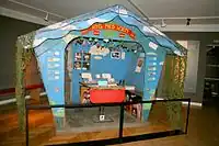 The most famous tourist draw to Christiania is no longer there, but rather on the National Museum in downtown. The old colourful hash-stalls which used to line Pusher street, was demolished in 2004, in an attempt to gain permanent rights to occupy the area from the right wing government. One of them, the signature blue "Ryg med hjem (Smoke-away)" booth, was salvaged, and is now on display in the modern collection of the National Museum, complete with furnace, sales tables and instruments to sell marijuana, but without the authentic goods. ![]() |