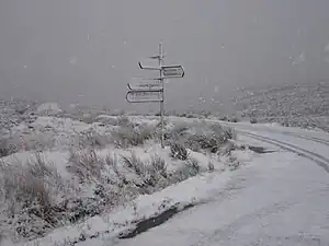 - 🌍 Sally Gap is the mountain pass at the crossroads of R759 and R115, but the term has come to mean the entire scenic road east-west through the mountains. From the east R759 starts near Roundwood and passes the corrie lake of Lough Tay, the usual start point for climbing Luggala. The "Gap" is the crest of the ridge at 503 m / 1650 ft, with Kippure looming to the north and Gravale and Duff Hill to the south. Descending west on R759 you pass watery bog and boggy water as the ditches and runnels coalesce into the headwaters of the Liffey. Kippure Bridge is worth a photo; Kippure Lodge is used for events but doesn't have hotel facilities. Lower down the land becomes pastoral; the road heads northwest to meet N81 north of Blessington, while the river curls southwest to flow into Poulaphouca reservoir lake.