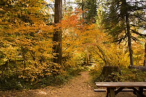 - Mickelson Trail — Established in 1998, this 109 mi (175 km) rail trail passes through the Black Hills region of South Dakota. The route lies almost entirely within the Black Hills National Forest, where visitors are treated to mile after mile of picturesque landscapes and forested mountains. Due to its former life as a railbed, however; inclines never exceed 4%. You'll cross over 100 scenic bridges, and find services spaced about 15 miles apart.