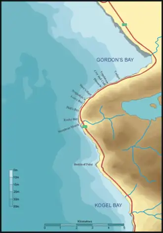 - Dive sites of the Cape Peninsula east coast, also known as Dive sites of False Bay west coast, and