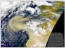 The direction of the prevailing currents and the distance to the nearest land ensures that there is very little pollution. Very occasionally a dust storm will blow across from the Sahara to the Caribbean so that dust might land on the reef, sometimes Sargassum weed lands on the beaches from the Sargasso sea, and algae from the Orinoco River in South America has been known to partially asphyxiate the reef temporarily. In the early 2000s an oil spill on the east coast beaches was attributed to a foreign tanker washing out its tanks illegally out of sight of land. Heavy rain might wash agricultural mud from the north of the island into the ocean to be carried down over the reef. However the main stressors of the fauna come from the mechanical energy of the water and they generally cope well with that.