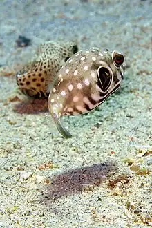 - Marine life: — Marine life is plentiful and varied due to the currents. Fish life includes Moorish idols, barracuda, sharks, pufferfish, snappers, surgeonfish, wrasses, angelfish, and jacks. A small cave at 6m is occasionally graced by resting whitetip sharks and a submerged pinnacle at 21m offers a good vantage point from which to see pelagics when the current is running.