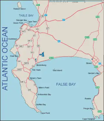 Strictly speaking, False Bay is part of the Atlantic Ocean, which extends as far as Cape Agulhas, but when in Cape Town, Atlantic generally refers to the western seaboard of the Cape Peninsula, and the east side is referred to as False Bay, or the Simon's Town side. This convention will be used throughout this guide.