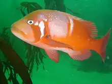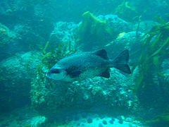Reef fish of this region are most varied in False Bay, and most common in the restricted zones of the Marine Protected Areas, where they have been protected by law for several decades, though poaching still occurs, and enforcement is quite unreliable. Most of the reef fish are camouflaged to some extent. Many are silvery grey and countershaded, like the ubiquitous Hottentot seabream, the silvery Fransmadam and the Steentjie. Others have vertical bars or dark patches which may help break up their profile in kelp, such as White stumpnose, Zebra, and White steenbras, while many of the smaller species are cryptically coloured and blend very well into their environment. These are generally fish which spend most of their time on or very close to the reef, and their coloration is usually an indication of the typical colours of their habitat. These include various endemic klipfish, and a few blennies and gobies, the fingerfins, Cape triplefin, Smoothskin scorpionfish, two species of horsefish, a pipefish and the Rocksucker. There are also a few red fish, which are fairly visible, such as the very common Roman, and the less common Red stumpnose and Red steenbras. Most of the fish mentioned are solitary or found in small shoals, but there are also Strepies and Maasbanker which tend to shoal in fairly large numbers, and moderately large shoals of Hottentot are seen quite frequently. Galjoen are fairly rare and usually seen in small groups on top of the reef where there is a lot of wave movement, and the similar looking Cape knifejaw prefers deeper and high profile reef between the rocks. Seacatfish are shy and tend to spend the daytime in crevices and holes.