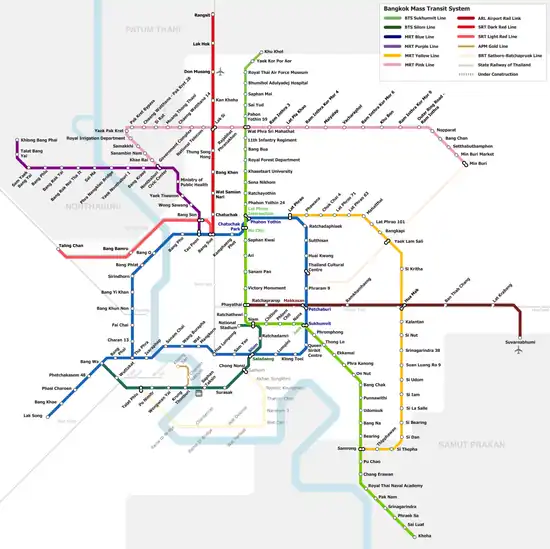 - Train: across a covered overpass from the airport is Don Mueang Train Station. While the rickety old local services have been replaced by a modern commuter service running every 12-20 minutes, these terminate at Bang Sue in northern Bangkok, where you'll need to change to the MRT Blue Line to get anywhere useful.