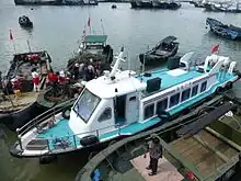 Fairly frequent local bus service connects most towns (镇) with neighboring towns and the county seat. Ferries operate across some river estuaries. For example, there is passenger ferry service from Long'an 龙安 (the port for Dianxia Town 店下镇, connected by bus service to Fuding and Taimushan) to Shacheng Town (傻城镇), the port town on the border with Zhejiang, from which one can travel north into Zhejiang (the Yuliao 渔寮 resort area and beyond, toward Cangnan and Wenzhou) along the winding coastal road (bus service available).