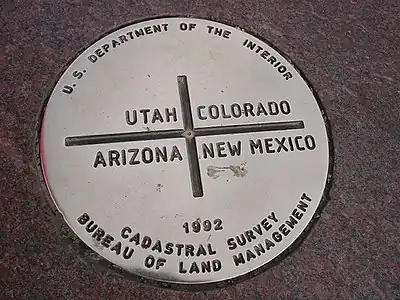 Four Corners Monument and Tribal Park is the quadripoint for the states of Arizona, Colorado, New Mexico, and Utah. The monument is managed by the Navajo Nation and is a waypoint along the Trails of the Ancients National Scenic Byway.