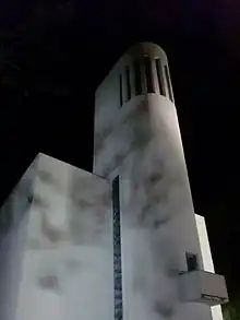 - 🌍 Kannonkoski church (Kannonkosken kirkko), Kirkkotie 13 (Kannonkoski). Designed by Pauli E. Blomstedt, who however didn't live to see it finished in 1938 — his wife Märta and brother Aulis, both architects, finished the design. During its construction a model of it was presented on the 1937 World Fair in Paris. The church is said to remind of an ocean liner sailing in the middle of a rural landscape.