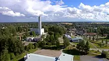 Aerial view of Nakkila and its church - 🌍 Nakkila church (Nakkilan kirkko), Kirkkokatu 4 (Nakkila). Designed by Erkki Huttunen and finished in 1937, the church in Nakkila was the first functionalist church building in the country. As such, when finished it was radically different from other churches, which created some controversy.