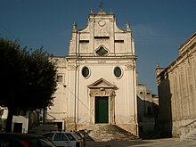 On the high altar there is a painting of the Assumption of Mary by Carlo Rosa and on the entrance door there is a grated choir loft and an organ dating back to the 18th century. The church has a two-storey facade marked by pilasters and a crowning with fittings, two large oval oculi and a tribolated window. In the monastery there were a considerable amount of paintings but a conspicuous part passed into state property after the suppression laws.