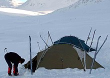 In the winter, which may mean from January to February or from October to May, depending on the destination, cross country skiing is the way to go, at least for longer distances in many areas – wilderness backpacking and back-country skiing are more or less considered the same activity. At destinations with hiking trails, there are often skiing tracks in the winter.