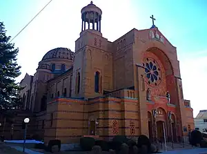 - the Polish Cathedral Style, which, as its name indicates, was brought by immigrants from Poland to areas of the United States where they settled in large numbers: namely, the industrial cities of the Great Lakes and Mid-Atlantic regions and, to a lesser extent, southern New England. Built in the greatest numbers between 1870 and the First World War, these structures were invariably much larger and more ornate than neighboring churches: their grand scale served as a testament both to the glory of God and to the prestige of the Polish-American communities who built them, but also led to criticism from other denominations about the use of donations from poor immigrant parishioners to fund lavish church buildings.