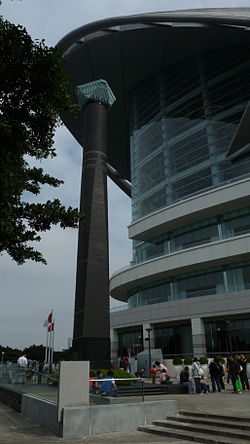 - 🌍 The Hong Kong Convention and Exhibition Centre (at the harbour-front at Wan Chai, take directions from the MTR; alternatively, use the Star ferry from Tsim Sha Tsui to arrive at the Wan Chai ferry terminal). One of Hong Kong's most outstanding buildings. If you are refused admittance, you can take a walk along the promenade at the front of the building to find the place where the British returned Hong Kong to mainland China. Paved in concrete, the modest plaza where the Handover took place in 1997 is home to two monuments; one takes the form of a giant golden bauhinia and the other looks like a chimney stack. The bauhinia tree is sometimes known as the Hong Kong orchid and has been adopted as the emblem of the SAR which features on the Hong Kong flag that flutters above the square. For the many tourists from mainland China, this place holds a special significance, so you can expect a steady stream or tour buses.