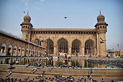 - 🌍 Mecca Masjid (SW of the Charminar). One of the oldest mosques in the city, and easily the biggest. Muhammed Quli Qutub Shah began building it in 1617 under the supervision of Mir Faizullah Baig and Rangiah Choudhary. Mughal emperor Aurangzeb completed the construction in 1694. The mosque is a granite giant with awe-inspiring innards. The main hall of the mosque is 75 feet high, 220 feet wide and 180 feet long, big enough to accommodate 10,000 worshippers at a time. It is believed that Muhammed Quli commissioned bricks to be made with the soil brought from Mecca and inducted them into the construction of the central arch of the mosque, which explains the name of the mosque. The arched facades have been carved from a single piece of granite. Women must mandatorily have dupatta / shawl to get entry into the premises. Women can not wear skin-tight pants or leggings into the mosque, so wear something loose-fitted.