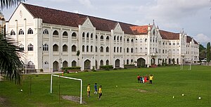 - 🌍 Padang Ipoh (Ipoh Green). This immaculate lawn near Jalan S.P. Seenivasagam was planted by the British during the colonial period as the cricket ground for the Ipoh Club, then a whites-only establishment. Today, it still serves as the main cricket ground for the Royal Ipoh Club (re-named from the Ipoh Club after the Sultan of Perak was admitted as the club's first non-white member), and is also used as the club's football (soccer) ground when not in use for cricket. The surrounding historic buildings include the mock-Tudor style Royal Ipoh Club, FMS Bar, HSBC Building and the magnificent St Michael's Institution secondary school.